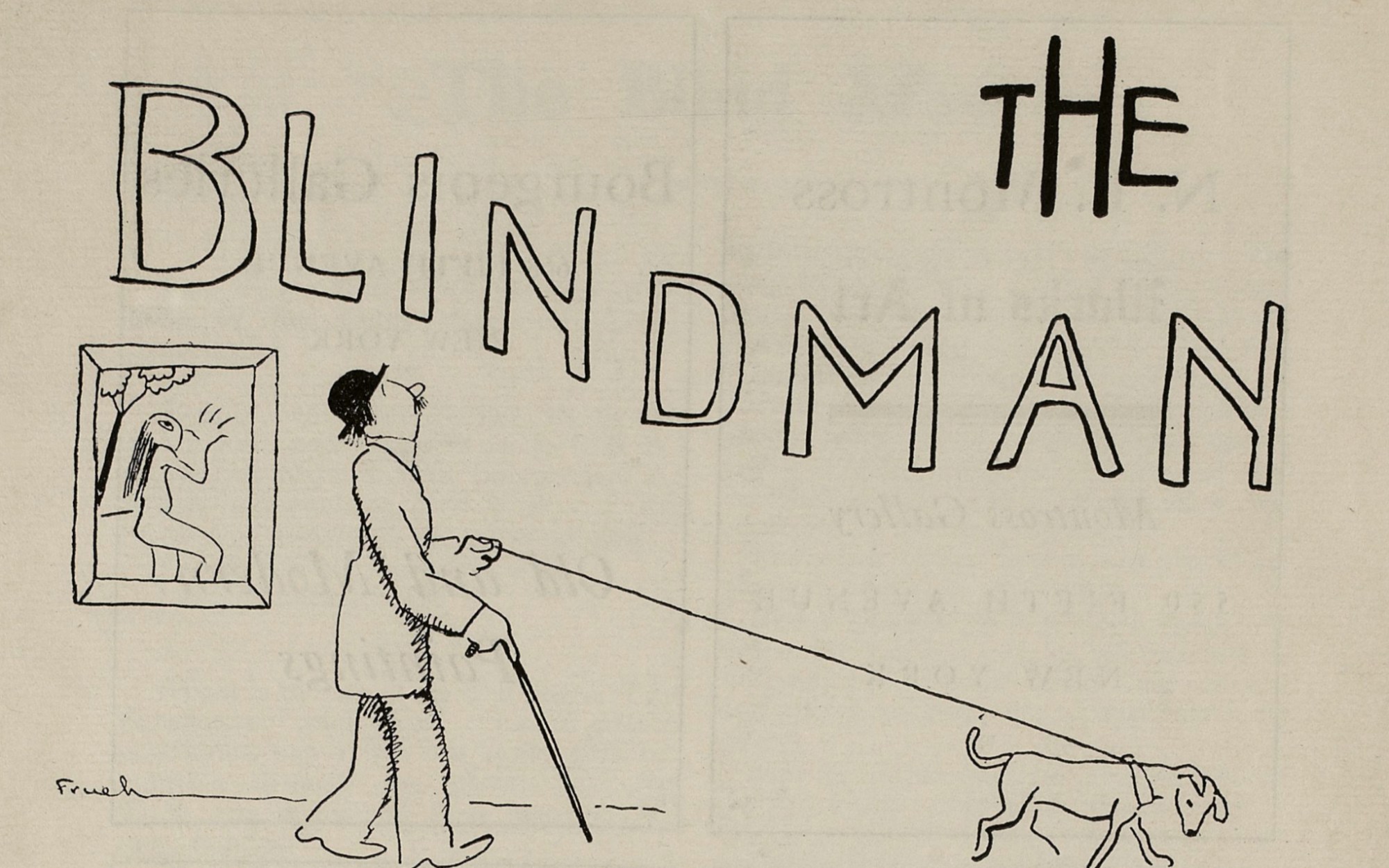 The Blind Man was edited by Marcel Duchamp, Beatrice Wood, and Henri-Pierre Roché and published in April and May of 1917. It seems weird to celebrate its 100th anniversary, however. The tidy compartmentalizing of time into years, decades, and centuries is among the greatest concession to modernity. We insist on parsing time into scientifically rational spans that speak ostensibly to the rhythms of nature, but also clearly fail to align with our experiences of the seasons, night and day, and the important markers of our human existence. In fact, it makes more sense to celebrate the 101st anniversary of the publication of The Blind Man, which I suggest that we do by reflecting on the absurdity of the world around us today.