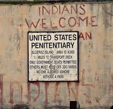 2019 marks the fiftieth anniversary of the Native American occupation of Alcatraz island that lasted 19 months from 20 November 1969 to 11 June 1971. The occupation has been variously interpreted as an act of civil disobedience as well as the “first major instance of pan-Indian resistance in the twentieth century.” [1] Cherokee activist Chief Wilma Mankiller has described the occupation as “a spiritual reawakening of our people.” Indeed, as the tendentious power of the various hand-drawn signs broadcasting “freedom “and “peace on earth” on the smoke stack and the water tower of the Alcatraz prison, the notorious federal penitentiary, proclaim to this day, this daring act of a small group of Indians to establish the “Home of the Free Indian Land” upon the rock of a prison boldly frames the prison as an architectural and geographical metaphor for Native American belonging in the United States. It also frames the indestructible and inalienable freedom of the Native American spirit within the walls of their incarceration.